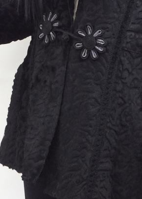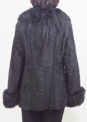 グルービング(溝で模様を作る)加工した毛皮で作った贅沢なアイテム。襟と袖口のファーは取り付けられているので自然です(取り外し不可)