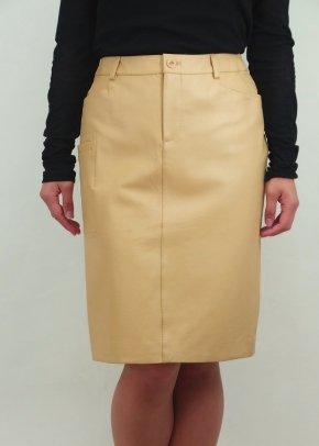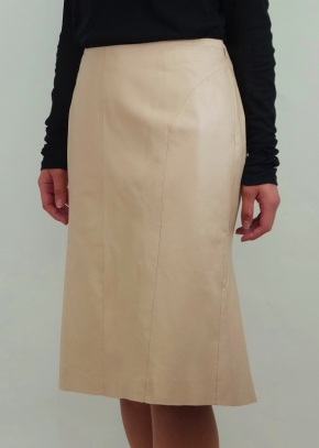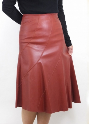 ピッグスエードのコーティングのレザーで表情がお洒落なシュリエットの美しい膝丈のスカート。