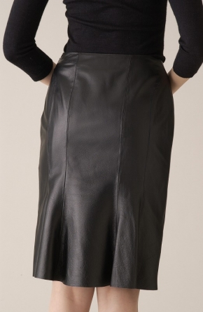 ピッグレザーは摩擦に強く傷つきにくく柔らかいという特徴を持ってるので、スカートにもピッタリです。サイドのアーチ型の切り替えラインはとてもスタイリッシュに見えます。タイトラインのシュリエットを崩さず後ろに入れたマーメードフレアーはエレガントでとてもお洒落。サイズ&カラーバリエーションも豊富な商品です。是非お気に入りをゲットしてください。