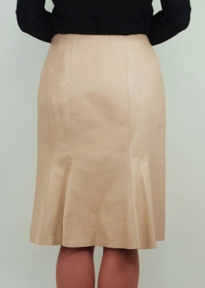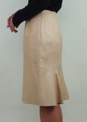 ピッグレザーは摩擦に強く傷つきにくく柔らかいという特徴を持ってるので、スカートにもピッタリです。サイドのアーチ型の切り替えラインはとてもスタイリッシュに見えます。タイトラインのシュリエットを崩さず後ろに入れたマーメードフレアーはエレガントでとてもお洒落。サイズ&カラーバリエーションも豊富な商品です。是非お気に入りをゲットしてください。