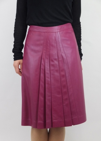 レザーのプリーツスカートはコーディネートに大活躍します。ニットやウール・チェック柄などなど、なんにでも相性の良いアイテムです。
