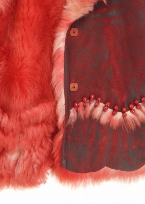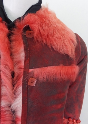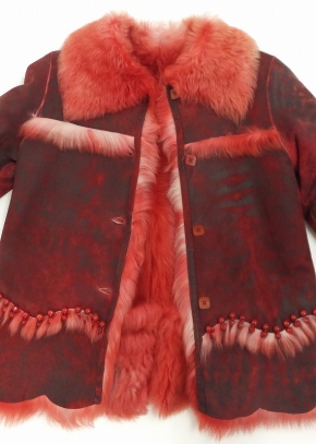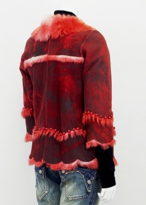 トルコ製。遊び心いっぱいのムートンジャケット。袖とヘムのスカラップが心ウキウキさせてくれます。カジュアルになり過ぎないのは前端のしっかりした丁寧な仕立てとなんと言ってもこの柔らかなムートンの質の良さです。寒い季節のお洒落のアクセントにどうぞ。