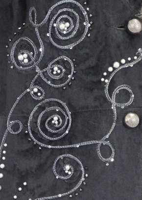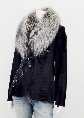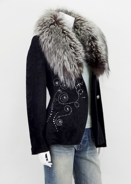 トルコ製 アシンメトリーに施されたコード刺繍とえりのフォックスがマッチしたゴージャスなジャケット。カジュアルにもフォーマルにもスタイリッシュに装えます。