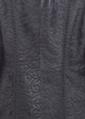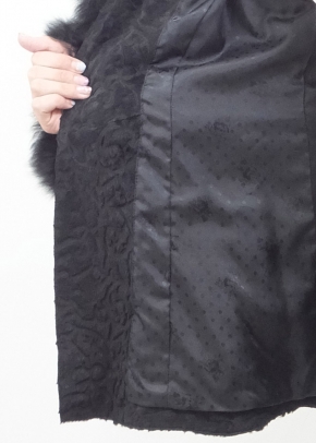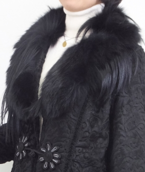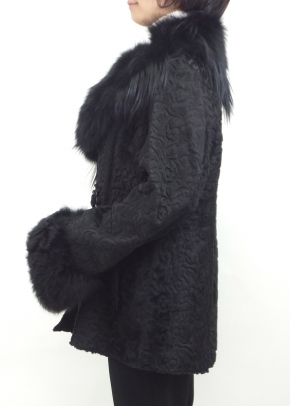 グルービング(溝で模様を作る)加工した毛皮で作った贅沢なアイテム。襟と袖口のファーは取り付けられているので自然です(取り外し不可)