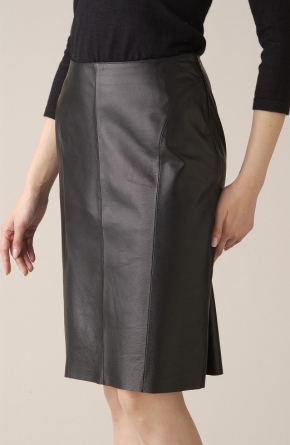 ピッグレザーは摩擦に強く傷つきにくく柔らかいという特徴を持ってるので、スカートにもピッタリです。サイドのアーチ型の切り替えラインはとてもスタイリッシュに見えます。タイトラインのシュリエットを崩さず後ろに入れたマーメードフレアーはエレガントでとてもお洒落。サイズ&カラーバリエーションも豊富な商品です。是非お気に入りをゲットしてください。
